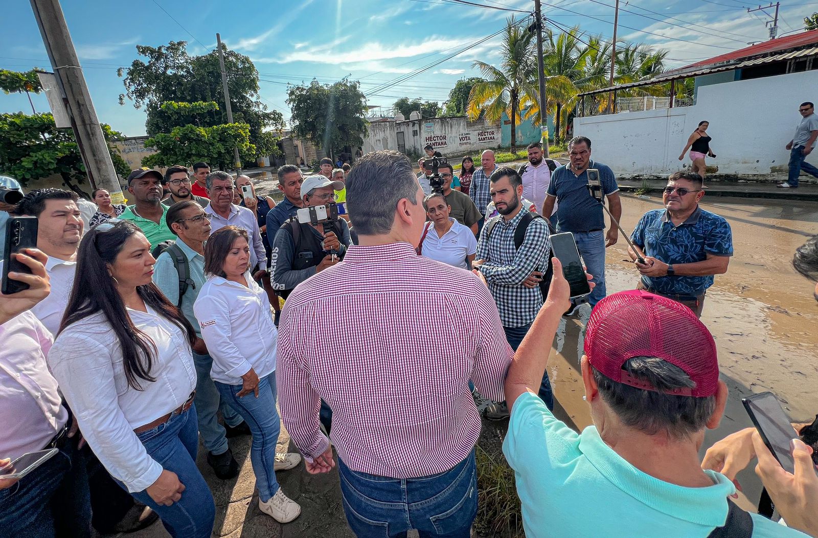 Héctor Santana también destacó la importancia de desazolvar con urgencia todas las líneas de drenaje y bocas de tormenta, debido a los taponamientos que provocan inundaciones en el municipio.