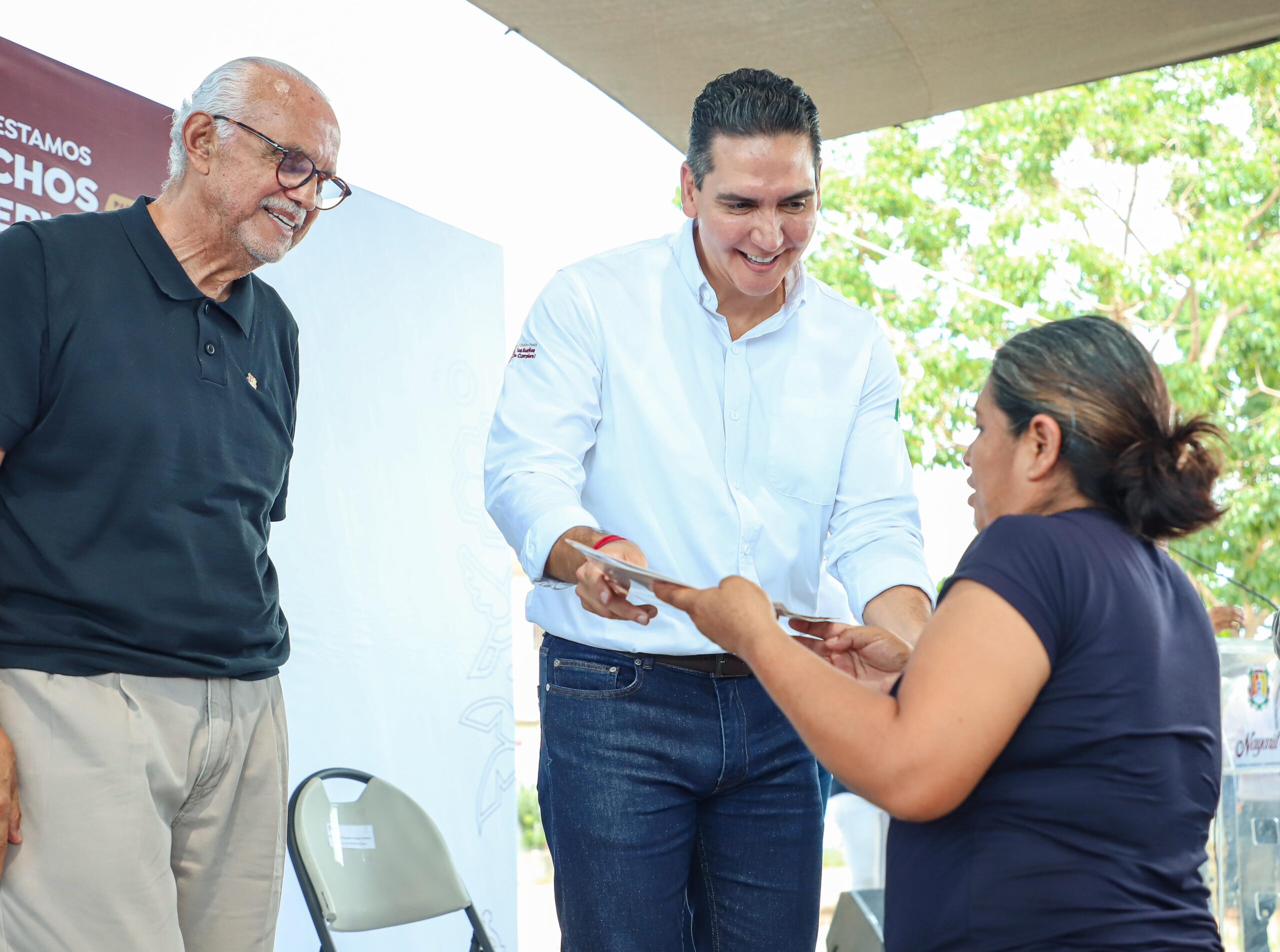 El alcalde Héctor Santana y el gobernador Miguel Ángel Navarro Quintero entregan escrituras a los habitantes de Villas Miramar en San Vicente