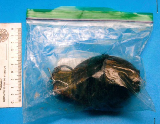 En el interior de la finca en las que fueron detenidos, se aseguraron 12 bultos que contenían 89 kilos de vegetal verde y seco (marihuana); una maleta con diversas bolsitas en las que había una sustancia granulada, 12 cascos balísticos, siete chalecos balísticos, seis placas balísticas, un inhibidor de señales de 16 antenas y ocho cargadores de diversos calibres.