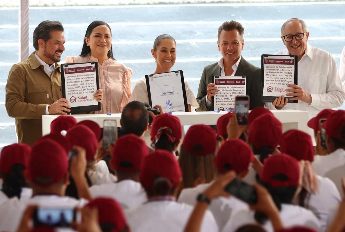 En San Pedro Tlaquepaque, Jalisco, con la firma de la Presidenta de México Claudia Sheinbaum Pardo como testigo de honor, la secretaria de Bienestar, Ariadna Montiel Reyes, y el director general del IMSS, Zoé Robledo Aburto, suscribieron el convenio de colaboración para el programa Salud Casa por Casa con el objetivo de fortalecer la atención de los derechohabientes de las Pensiones para el Bienestar de los Adultos Mayores y Personas con Discapacidad.