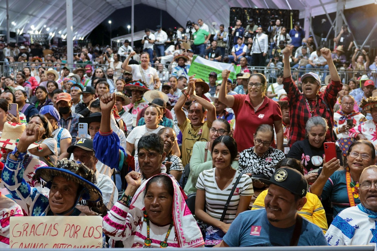 Se hace la asamblea, se nombra su Comité de Ejecución, de Supervisión, se nombra una mujer tesorera, se dan los recursos y… Aquí hay una tesorera, un aplauso para todas las mujeres de las comunidades indígenas. Este año es el “Año de la Mujer Indígena”; es a las primeras que reconocemos, porque es el origen, la fuerza de México son los pueblos originarios.