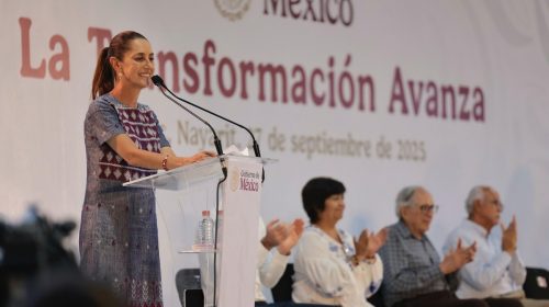 PRESIDENTA DE MÉXICO, CLAUDIA SHEINBAUM PARDO: Por eso estoy aquí con ustedes, dando el Informe de lo que hemos hecho en el país, pero también el Informe de lo que hemos hecho en Nayarit y lo que vamos a seguir haciendo en los siguientes años.