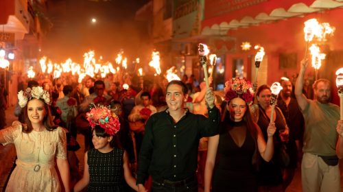 En el marco del Festival Internacional de Día de Muertos Bahía de Banderas 2025, la comunidad de Sayulita vivió una noche llena de emociones, música y tradición con una emotiva procesión hacia el camposanto del pueblo, donde residentes y visitantes rindieron homenaje a quienes se nos adelantaron. Acompañado de música y del pueblo de Sayulita se realizó la procesión que encabezó por el presidente municipal, Héctor Javier Santana García, acompañado de su esposa, Margui Zúñiga, y sus hijas, quienes compartieron con las familias locales este recorrido simbólico lleno de vida…
