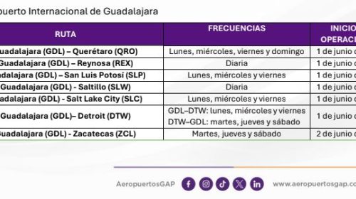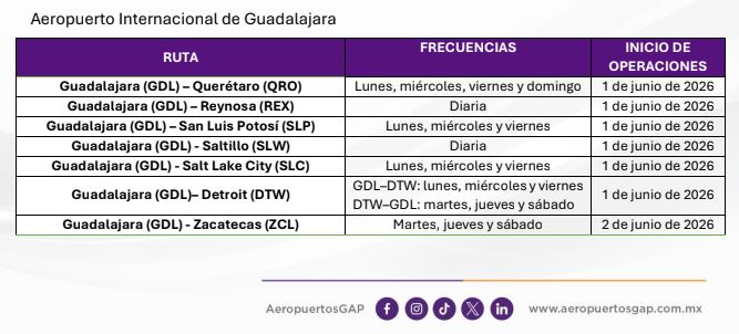 Estas nuevas rutas representan un paso clave para integrar de manera más eficiente destinos estratégicos a través de los aeropuertos de Guadalajara y Puerto Vallarta, preparando a
