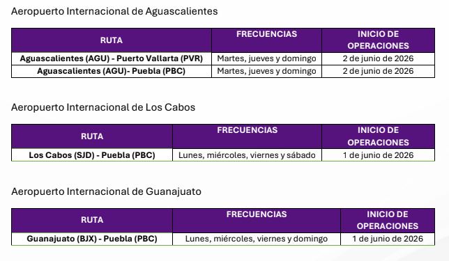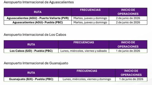 Las nuevas rutas, que comenzarán a operar a partir del 1 y 2 de junio de 2026, permitirán a los pasajeros contar con más alternativas de viaje entre estos destinos. Los servicios se operarán conforme a los siguientes itinerarios, que puede observar en las fotografías.