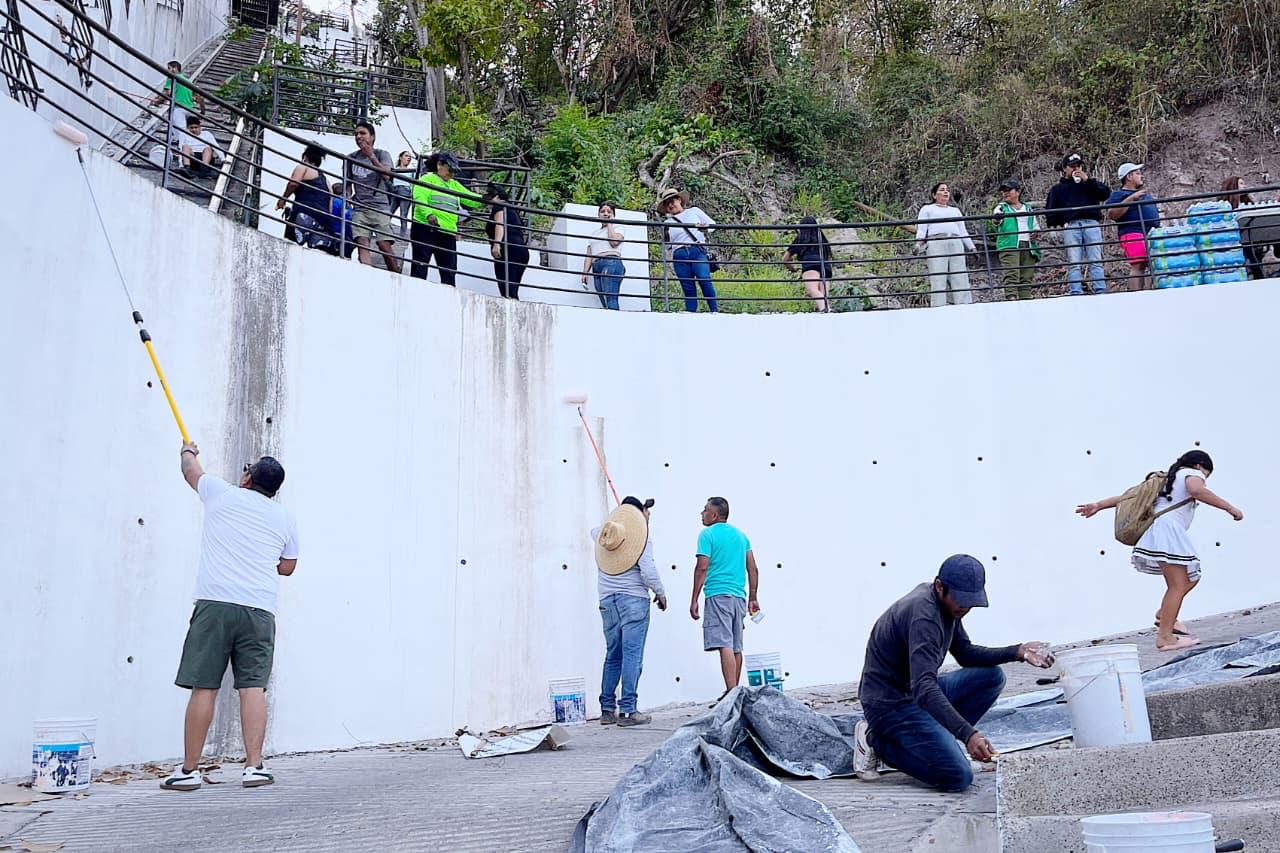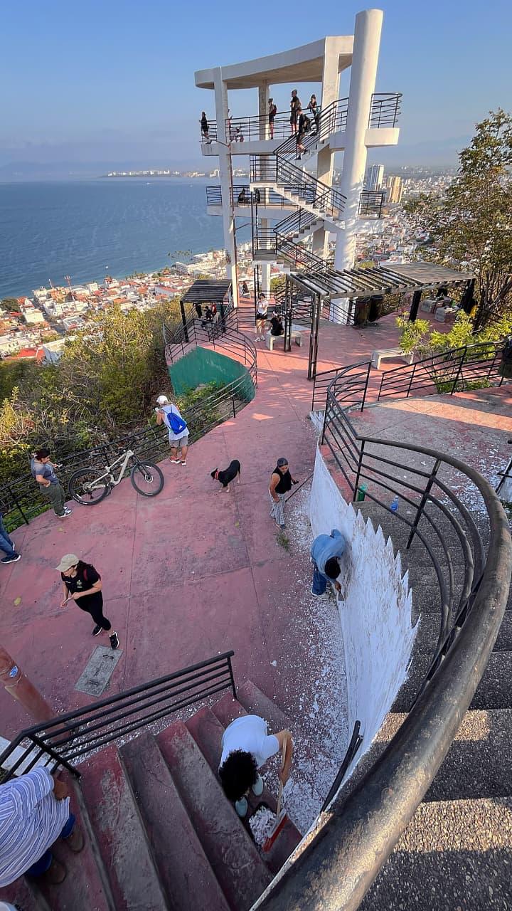 Desde temprana hora, personal de distintas dependencias municipales, así como voluntarios y voluntarias, comenzaron a subir al mirador con herramientas, pintura y material de limpieza para intervenir este icónico espacio.