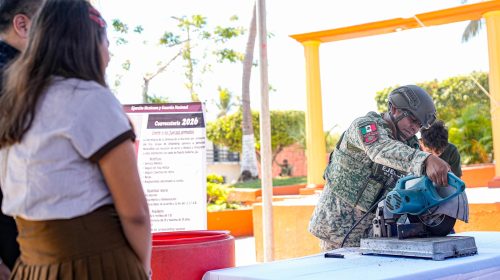 Como parte de la actividad, también se promovió la participación de estudiantes de nivel básico y medio superior, a quienes se les invitó a replicar el mensaje de prevención en sus hogares. Asimismo, se realizó una dinámica de concientización en la que niñas y niños intercambiaron juguetes bélicos por balones, fomentando alternativas recreativas y deportivas.
