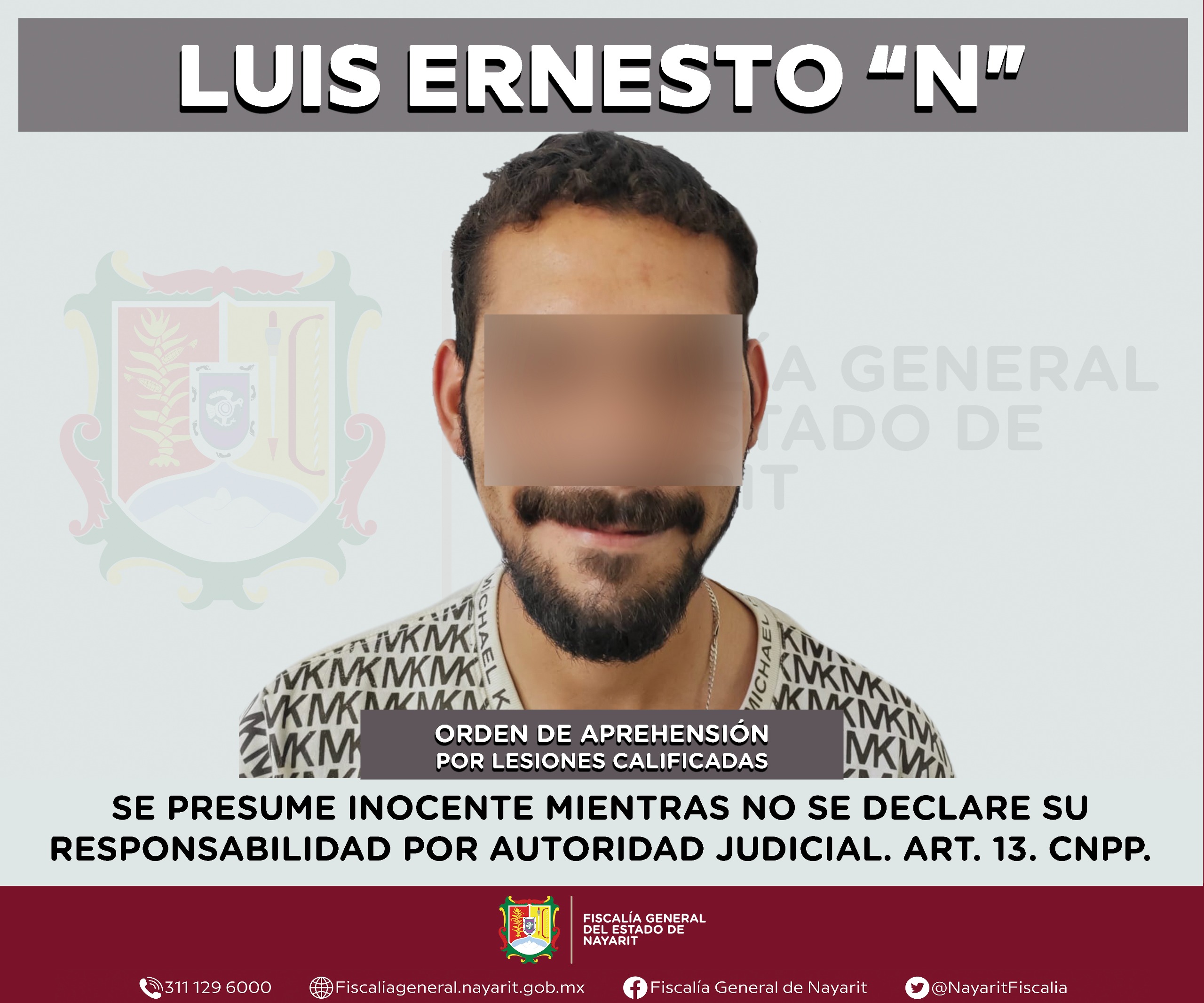 La Fiscalía General del Estado de Nayarit informa que elementos de la Agencia de Investigación Criminal ejecutaron una orden de aprehensión en la ciudad de Tepic contra Luis Ernesto “N”, por su presunta participación en hechos que la ley tipifica como delito de lesiones calificadas, cometido en agravio de una persona de sexo masculino cuya identidad se reserva para proteger su integridad y privacidad.
