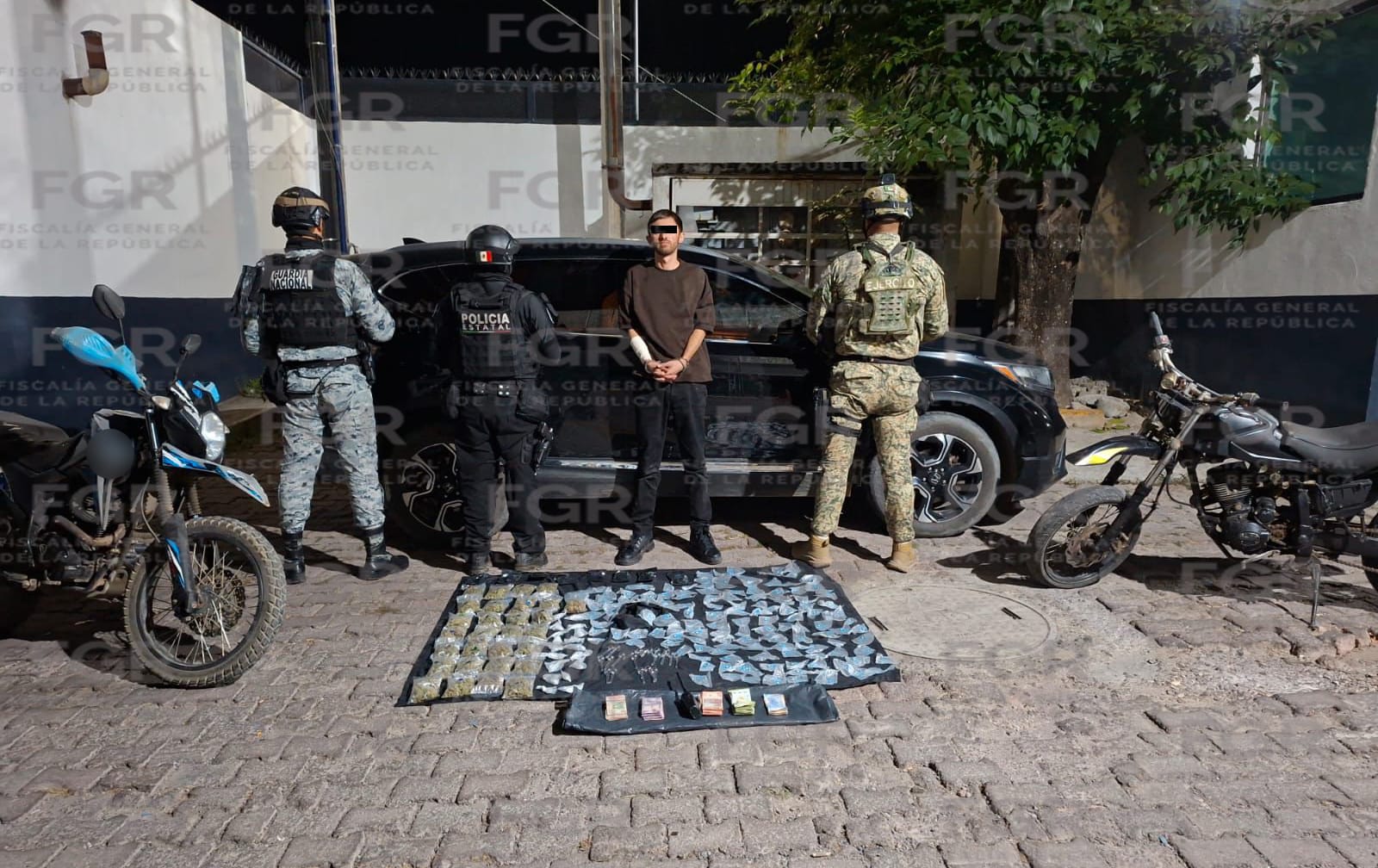 Durante la detención, las autoridades aseguraron 37 bolsas de marihuana, 150 dosis de metanfetamina, 18 dosis de cocaína, 20 pipas de vidrio, dinero en efectivo y un equipo de radiocomunicación, los cuales, junto con Jorge “N” fueron puestos a disposición de la Fiscalía Federal en la entidad, instancia que inició la carpeta de investigación correspondiente.
