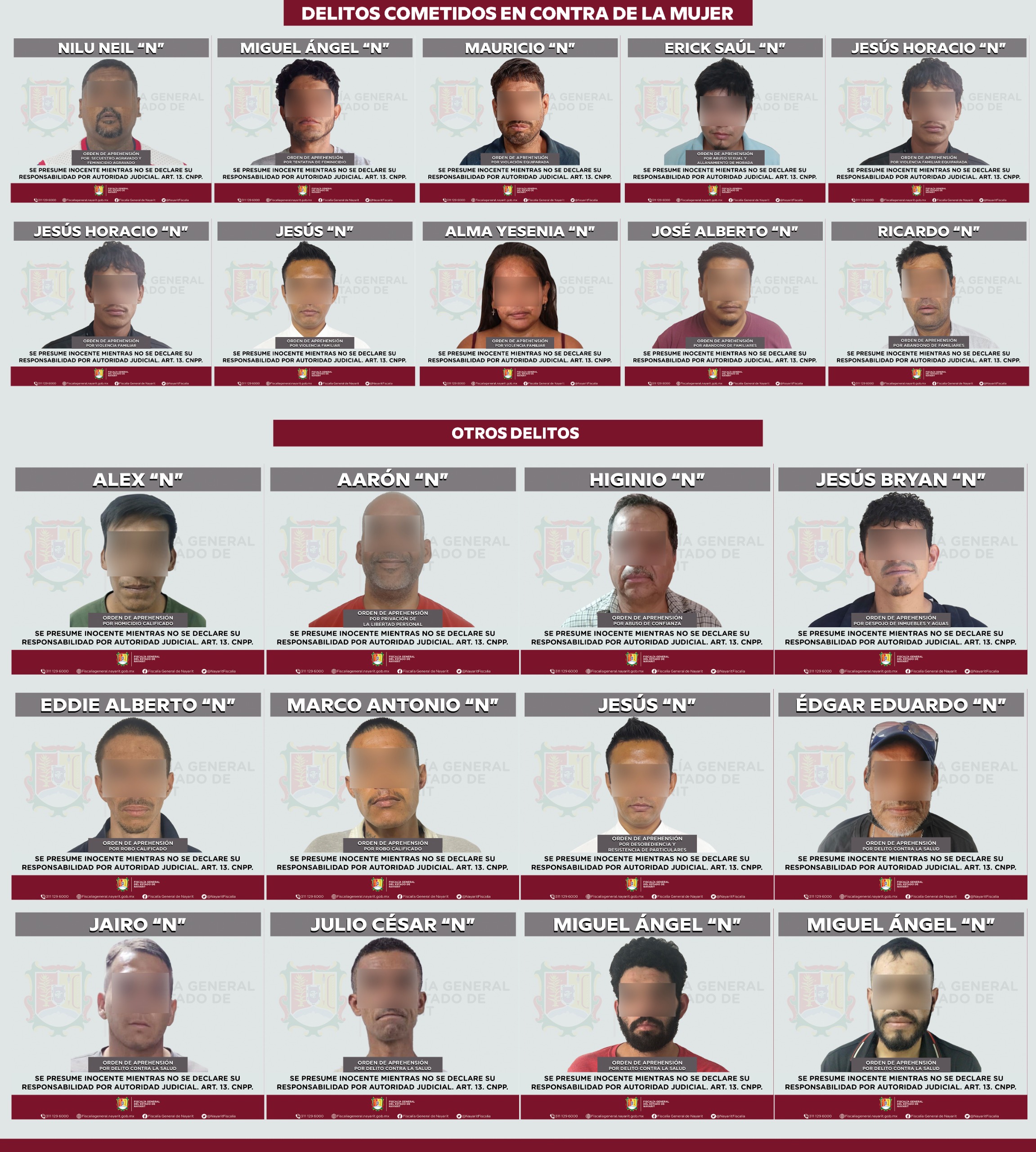 La Fiscalía General del Estado de Nayarit informó que del 14 al 16 de abril fueron ejecutadas 32 órdenes de aprehensión por diversos delitos en distintos municipios de la entidad.