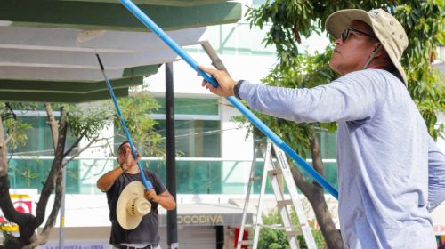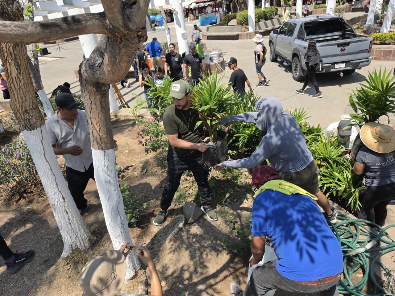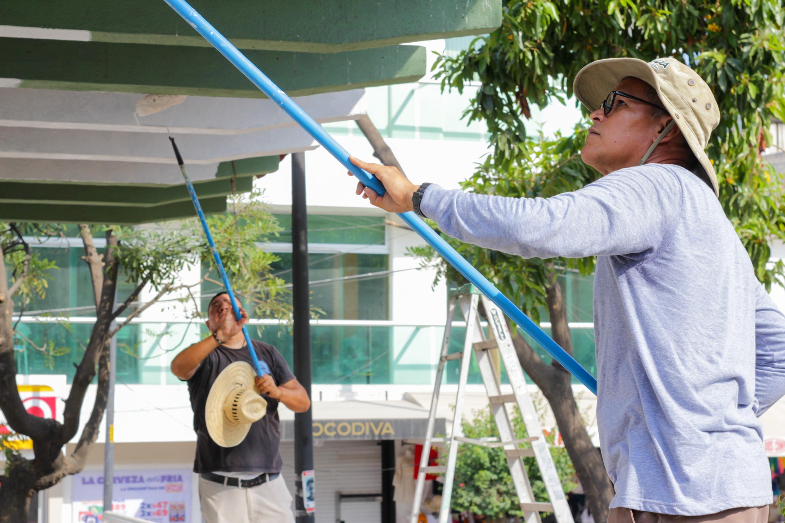 Con la participación de personal de las dependencias municipales y voluntarios, se realizaron labores de jardinería con especies ornamentales, limpieza general, pintura de fachadas y mejoramiento de áreas como las pérgolas, donde se instalarán guirnaldas de luces y papel picado.