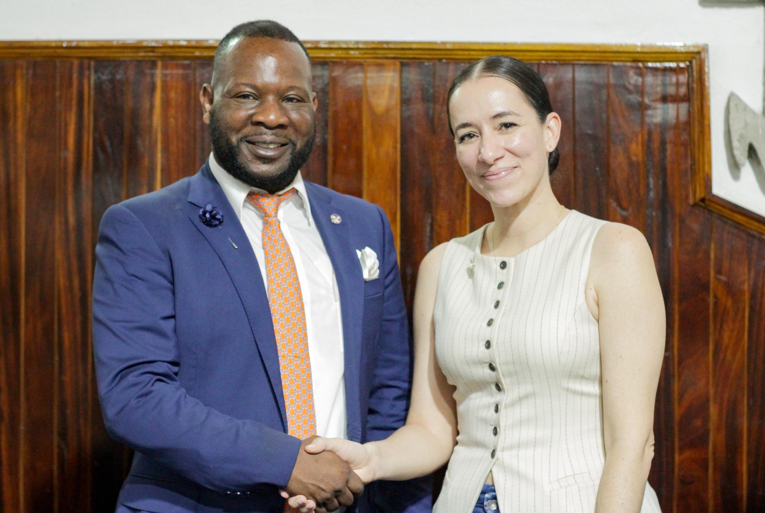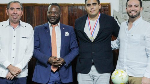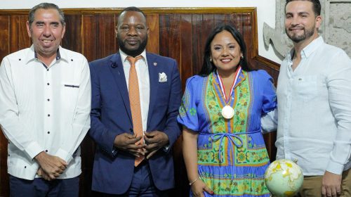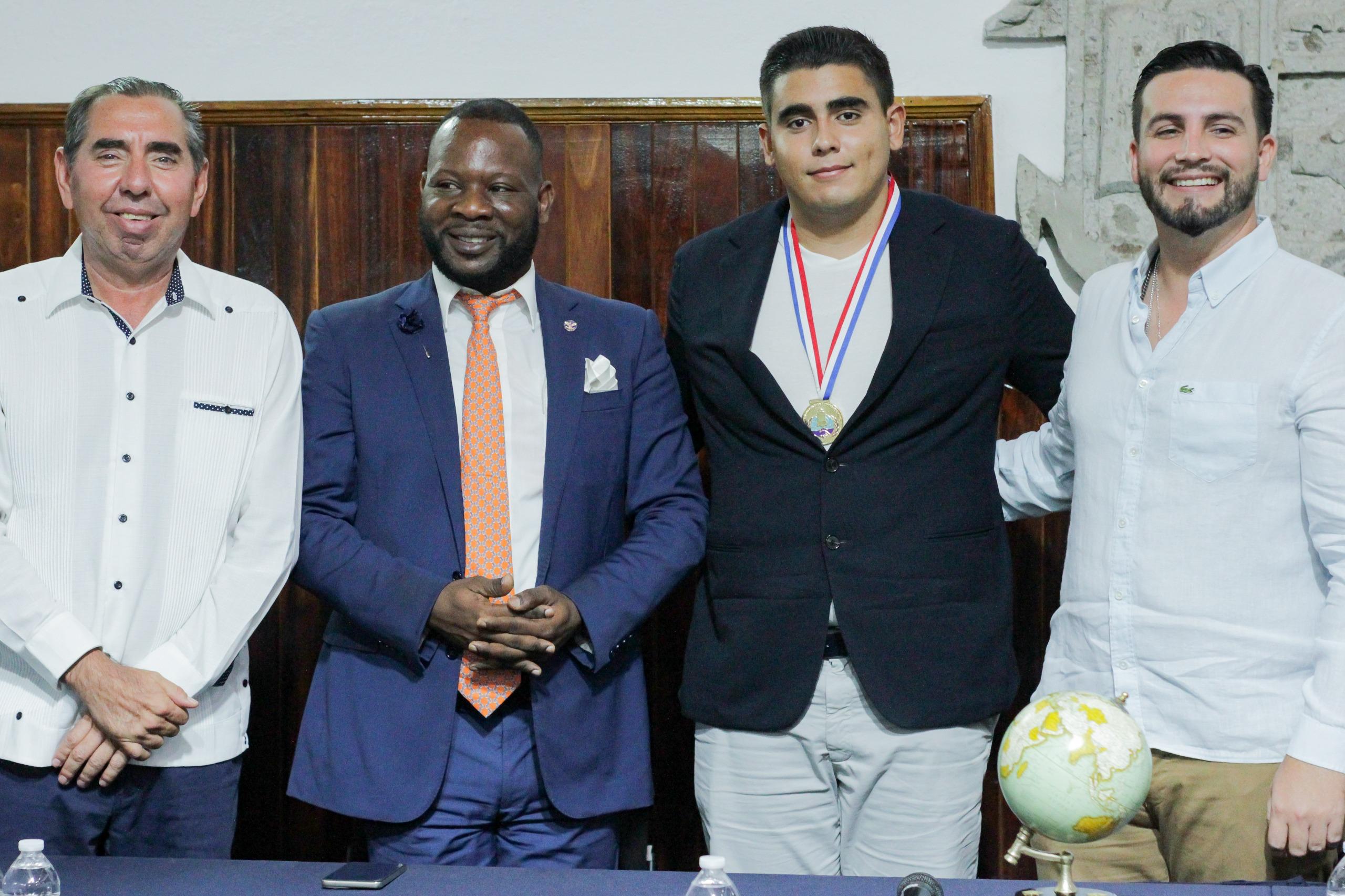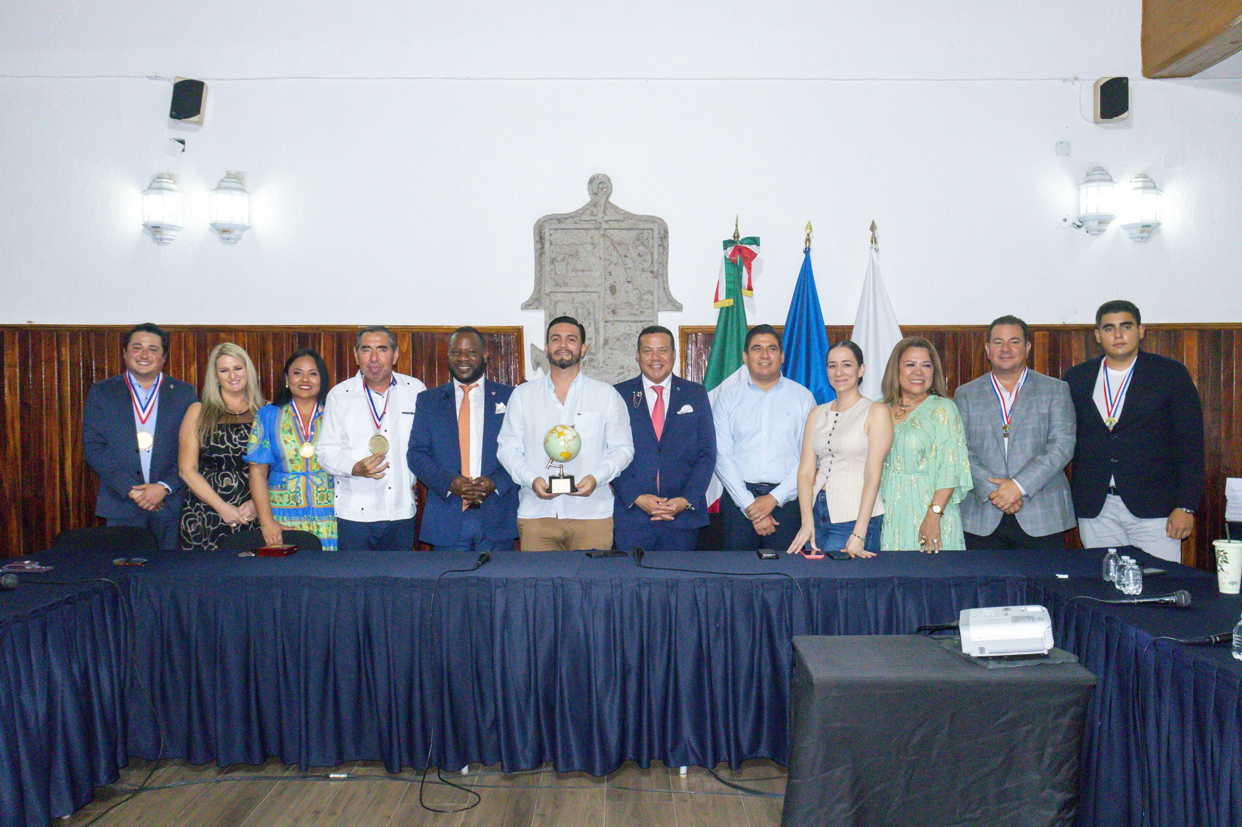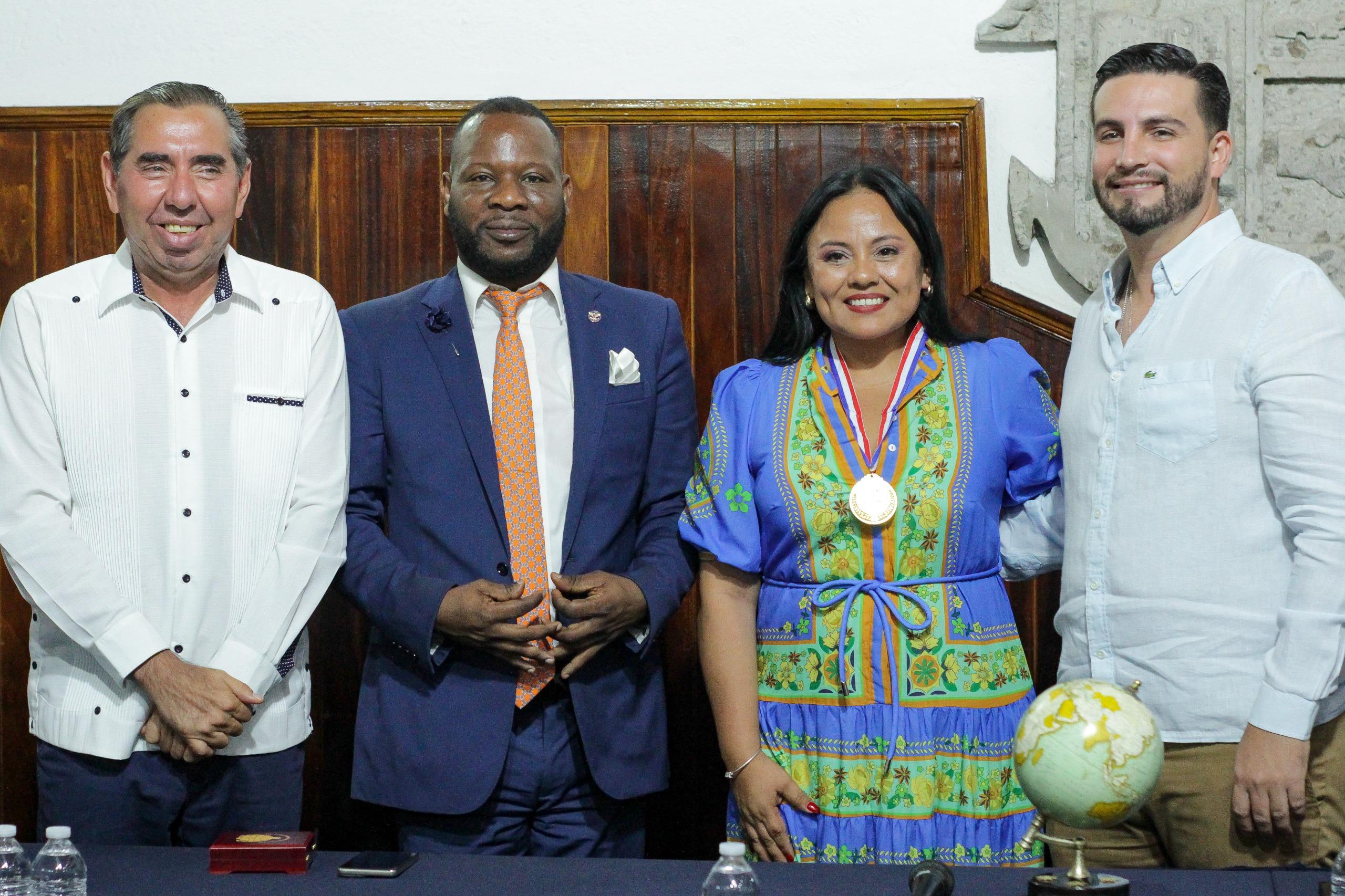 El presidente municipal, Luis Ernesto Munguía González, recibió un reconocimiento de parte del embajador global de La Paz ante las Naciones Unidas, Hugues Sanon, por su liderazgo en el servicio público, durante un encuentro con diplomáticos, empresarios y funcionarios locales.