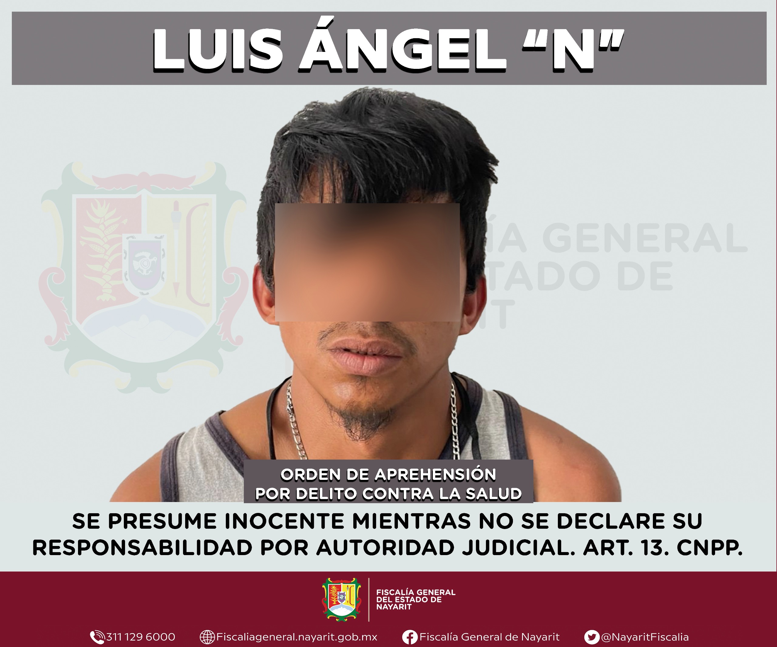 La Fiscalía General del Estado de Nayarit informa que elementos de la Agencia de Investigación Criminal ejecutaron una orden de aprehensión en la capital nayarita contra Luis Ángel “N”, por su presunta participación en hechos que la ley tipifica como delito contra la salud en la modalidad de narcomenudeo -en su hipótesis de posesión de psicotrópicos-, con fines de comercio en su variante de venta, cometido en agravio de la sociedad.