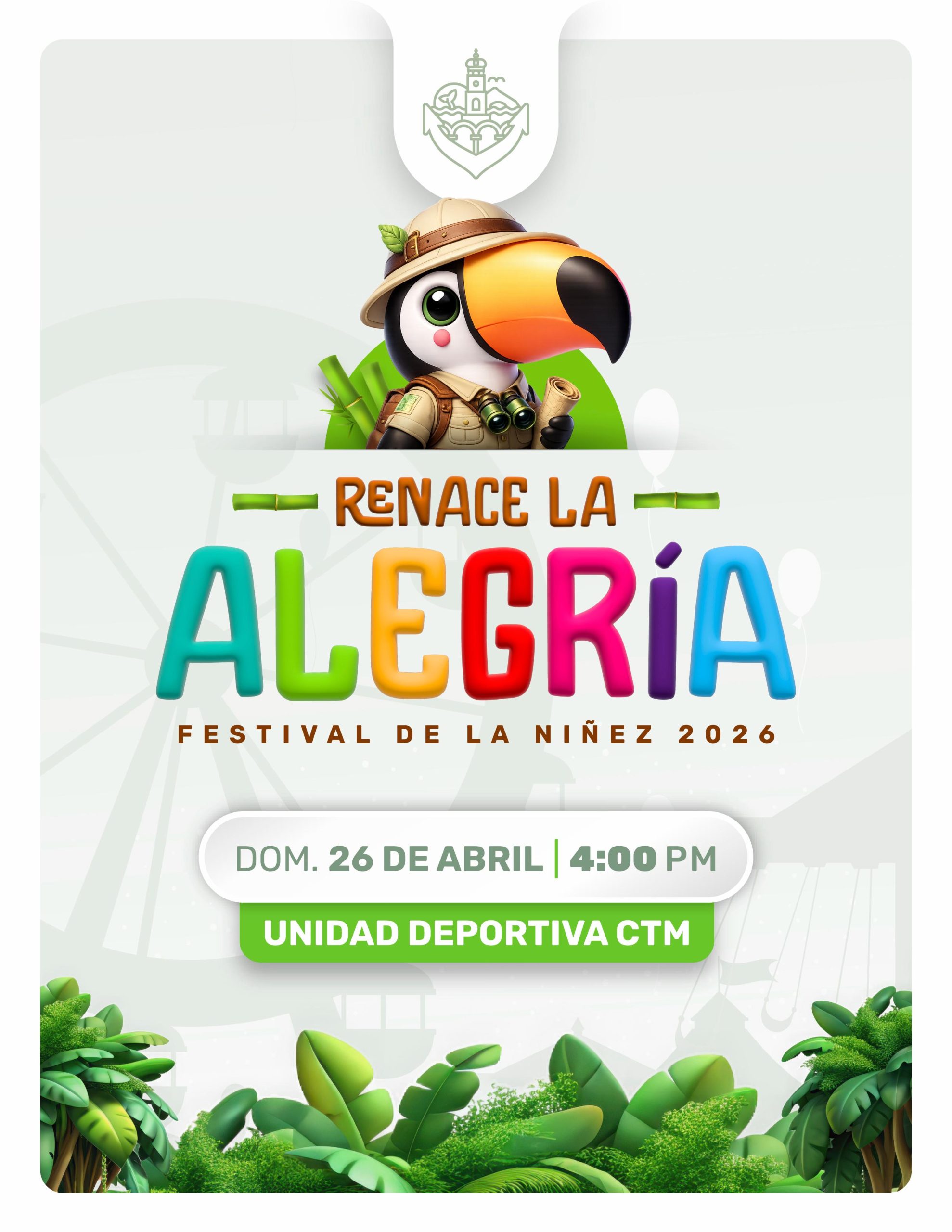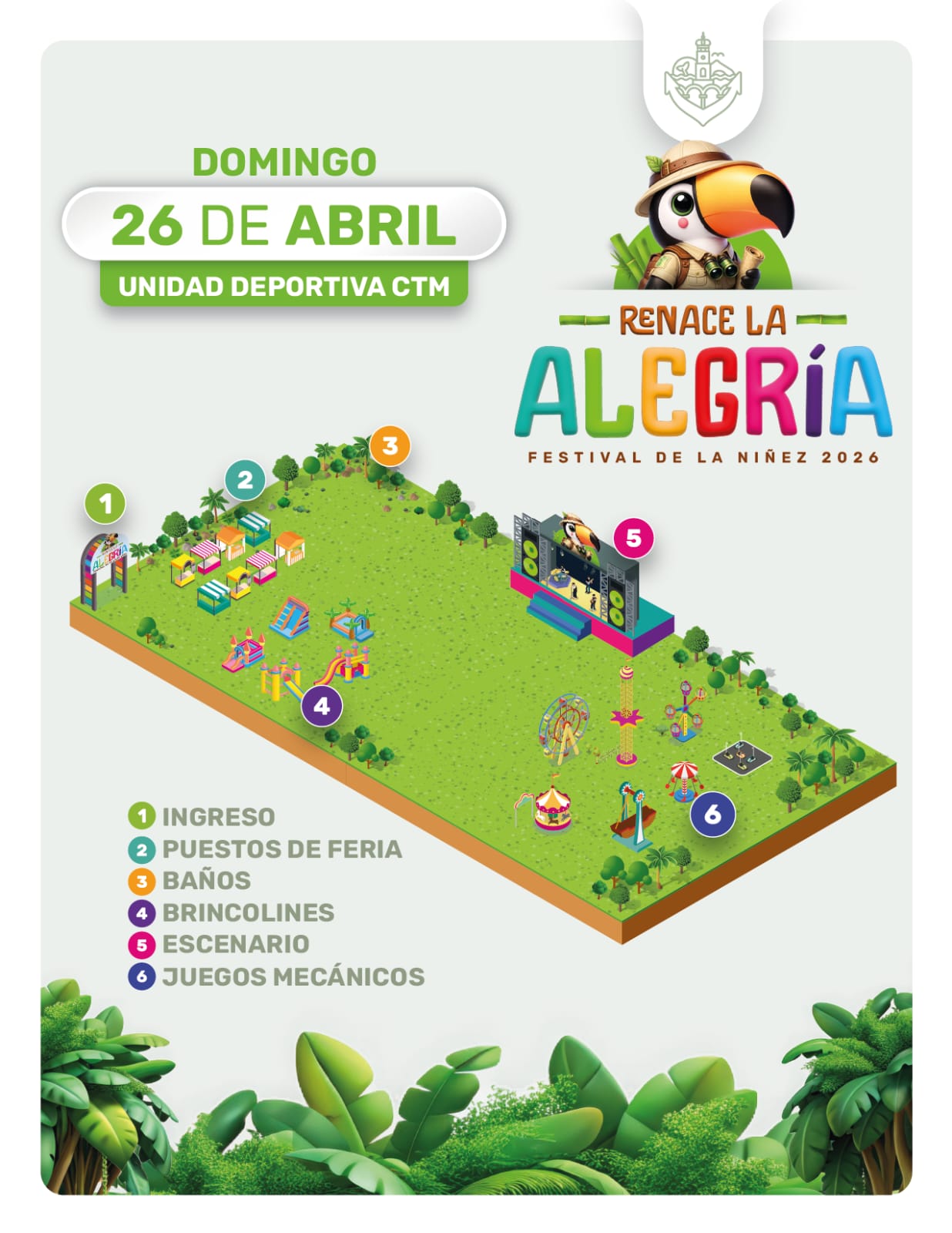 El presidente municipal, Luis Ernesto Munguía González, invita a las familias vallartenses a asistir este domingo 26 de abril a las 4:00 p.m. a la Unidad Deportiva CTM, ubicada en la colonia Lomas del Coapinole sobre la calle 24 de Junio, frente a La Lija, donde se llevará a cabo “Renace la Alegría”, un festival para celebrar a las niñas y niños de Puerto Vallarta.
